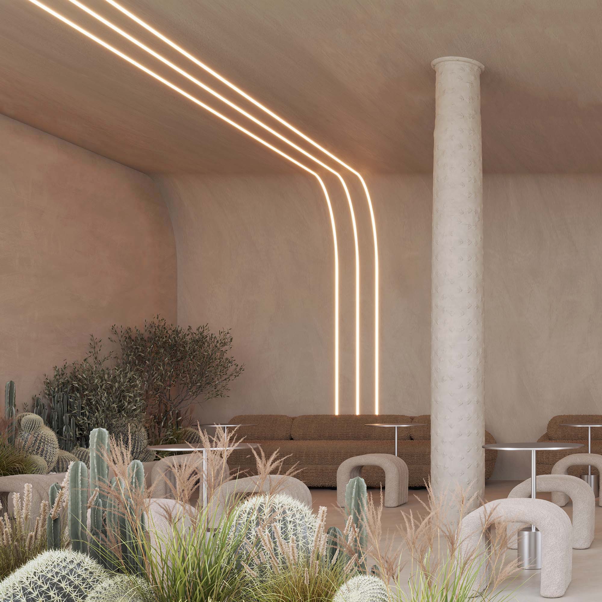 Совместим с прямым алюминиевым профилем FANTOM-BENT-W12. Сочетание разных видов профиля поможет подчеркнуть как прямые, так и изогнутые контуры интерьера, а также создать волнообразные линии, переходящие с потолка на стены.