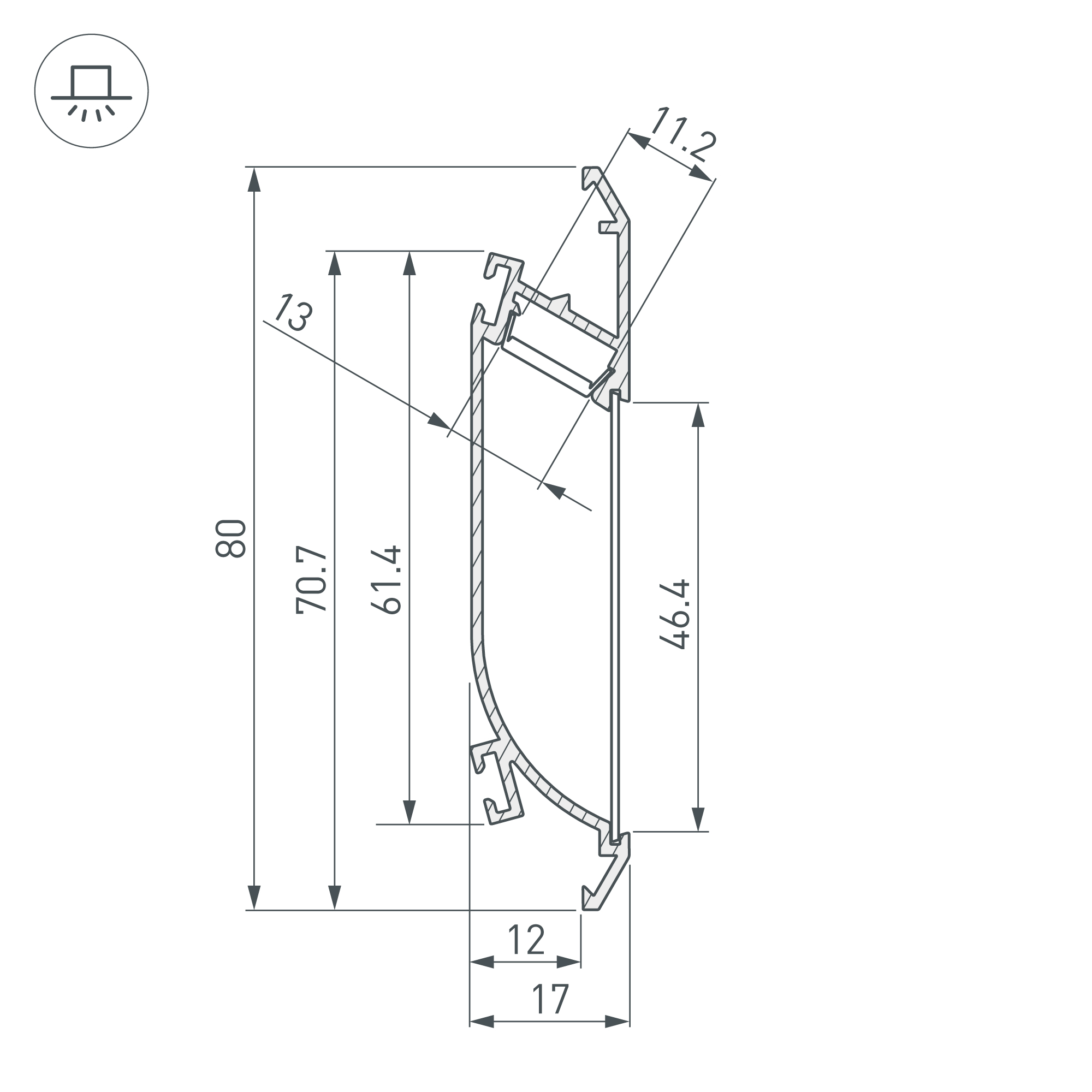 - Способ монтажа: Встраиваемый с накладным фланцем