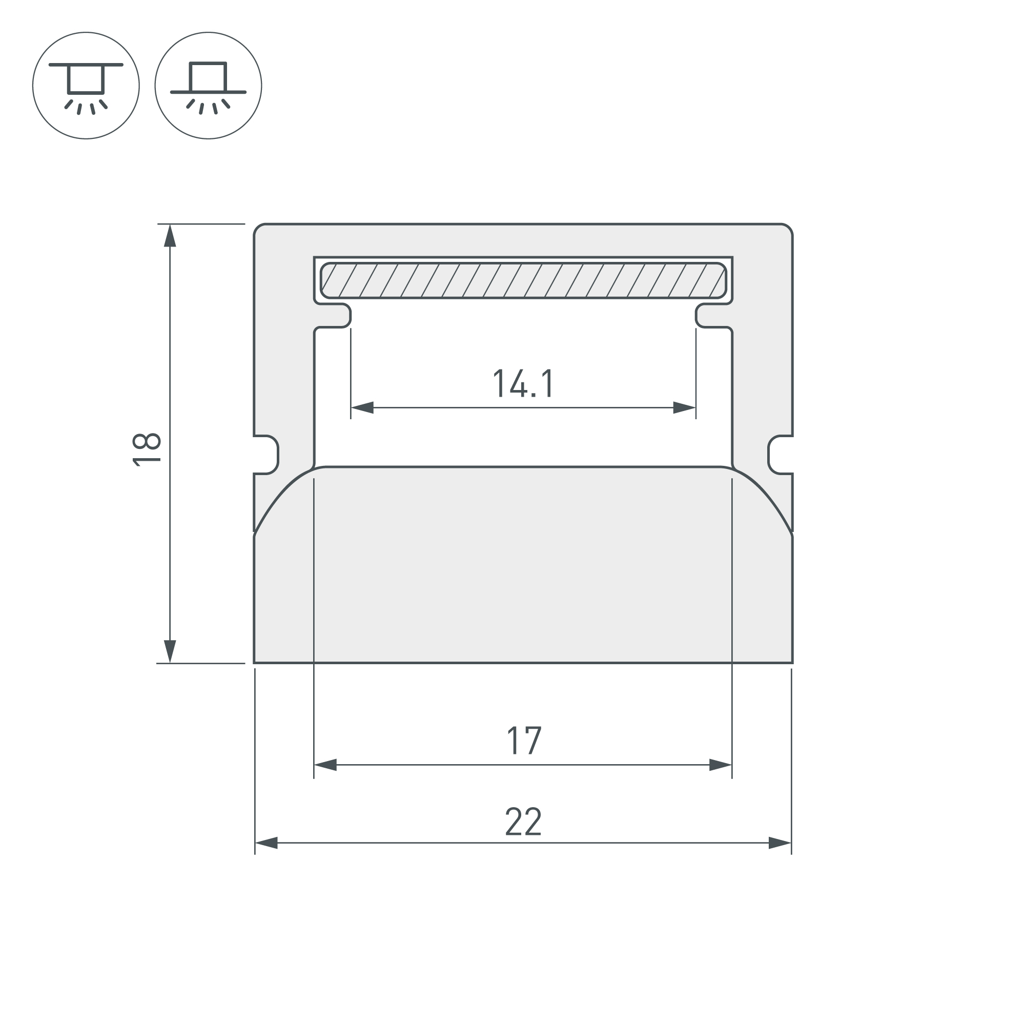 Профиль напольный для влажных помещений IP65 (при соблюдении технологии герметизации). Для установки во влажных помещениях необходима герметизация при помощи двухкомпонентного эпоксидного герметика. Экран белый матовый. В комплекте полоса для лент из анодированного алюминия. Для лент мощностью <10 Вт/м и шириной <14 мм. Цельнолитой профиль из поликарбоната со встроенным матовым экраном повышенной прочности. Габаритные размеры профиля составляют 2000 мм в длину, 22 мм в ширину и 18 мм в высоту. Идущая в комплекте полоса для установки светодиодных лент из анодированного алюминия позволяет использовать ленту шириной до 14 мм, высотой до 6,7 мм и мощностью до 10 Вт/м. Для установки во влажных помещениях необходима герметизация при помощи двухкомпонентного эпоксидного герметика. Класс пылевлагозащиты – IP65 (при соблюдении технологии герметизации). Для установки в пол требуется профиль-держатель, который заказывается отдельно.